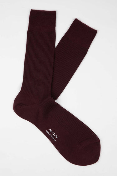 We are therefore extremely proud of our essential socks, which include this pair of classic and timeless ribbed socks in burgundy. Produced in soft merino wool in Portugal.