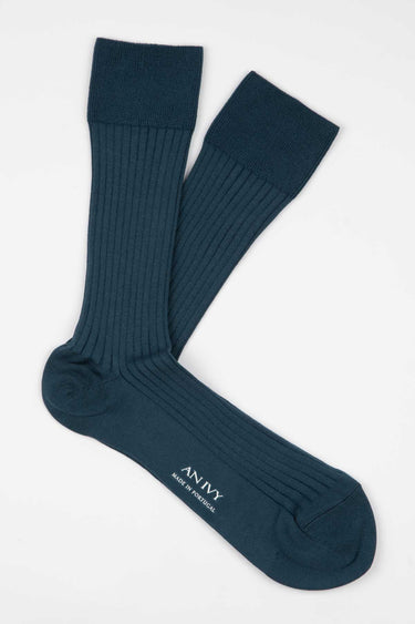 We are therefore enormously proud of our essential socks, which include this pair of classic and timeless ribbed socks in indigo blue. Produced in the finest Fil d'Écosse cotton in Portugal.
