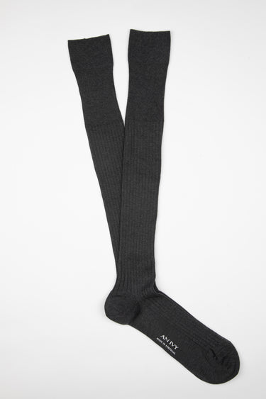We are therefore extremely proud of our essential socks, which include this pair of classic and timeless ribbed socks in dark grey. Produced in the finest Fil d'Écosse cotton in Portugal.