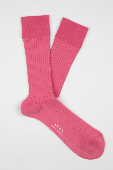 We are therefore extremely proud of our collection of essential socks, which includes this pair of classic and timeless ribbed socks in pink. Produced in the finest Fil d'Écosse cotton in Portugal.