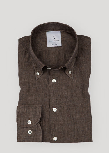 The brown linen shirt is woven in a light canvas weave in soft linen threads, making the shirt light and breathable and ideal for summer.