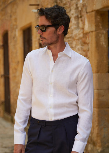 Our white linen shirt is made from European linen, which is one of the finest types of linen in the world. In contrast to ordinary linen, European linen is a finer type of linen that is twice as strong and with longer fibres, which gives the shirt an extra long life and comfort.