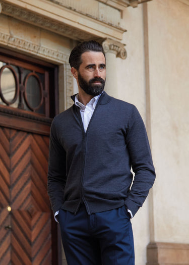 From Wall Street to a casual Sunday brunch, this versatile wardrobe must-have goes with it all. Our Full Zip is made from finely knitted Extra Fine Merino wool of the best quality. The light and soft wool means that it can be used all day.
