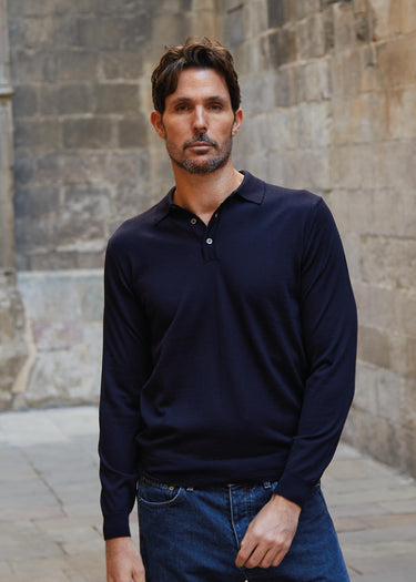 Appearance-Merino-Polo-Long-Sleeved-Langaermet-Striktroeje-Uld-Dark-Navy-Moerke-Blå