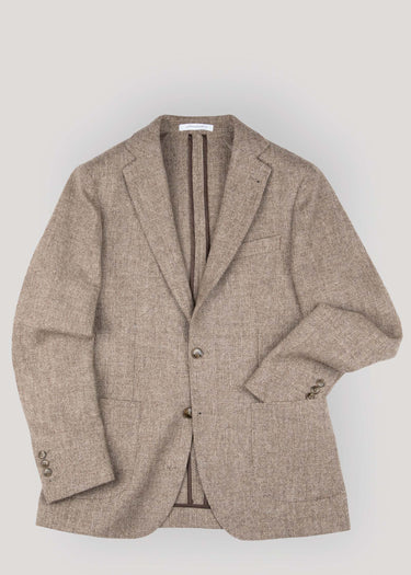 Herringbone Tweed Blazer, Unstructured, Light Brown